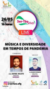 O professor Glauco Ferreira, pesquisador do IBP, professor dos cursos de graduação da Faculdade de Ciências Sociais (FCS), da Universidade Federal de Goiás (UFG) e docente do Programa de Pós-Graduação em Antropologia Social e do Programa de Pós-Graduação em Arte e Cultura Visual da Faculdade de Artes Visuais (FAV) da UFG, realizará a mediação da Live com o professor Rafael Noleto, sobre música, diversidade e produção de conhecimento.